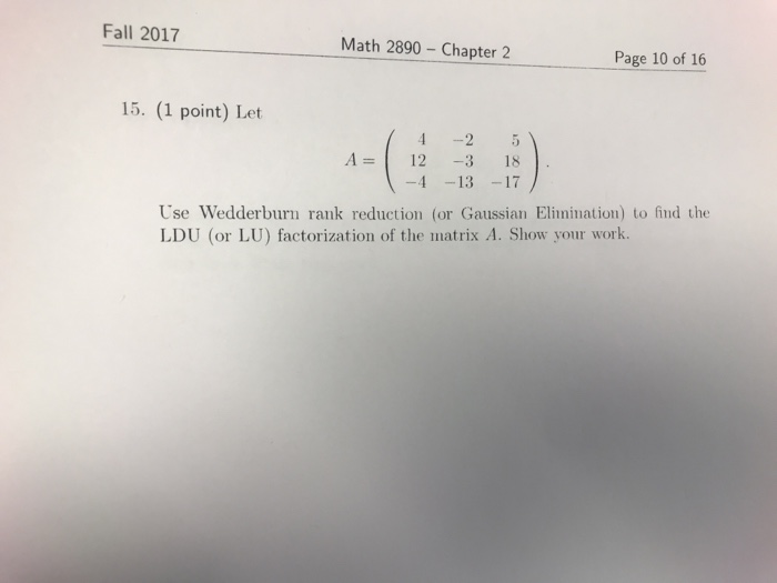By theorem 1.20, a admits the ldu factorization a=ldu where l,u,d are block matrices with the same sizes of blocks as a and l and u are block lower and upper triangular matrices with identities on. I am using a shortcut method i an ldu factorization of a square matrix a is a factorization a = ldu, where l is a unit lower. It turns out that all square matrices can be factorized in this form, 2 and the factorization is. .ldu factorization with all diagonal entries of l and u equal to 1, then the factorization is unique. We must find the ldu factorization of the matrix where the matrix l is a lower triangular matrix with 1s on its diagonal, the matrix d is a diagonal matrix.
